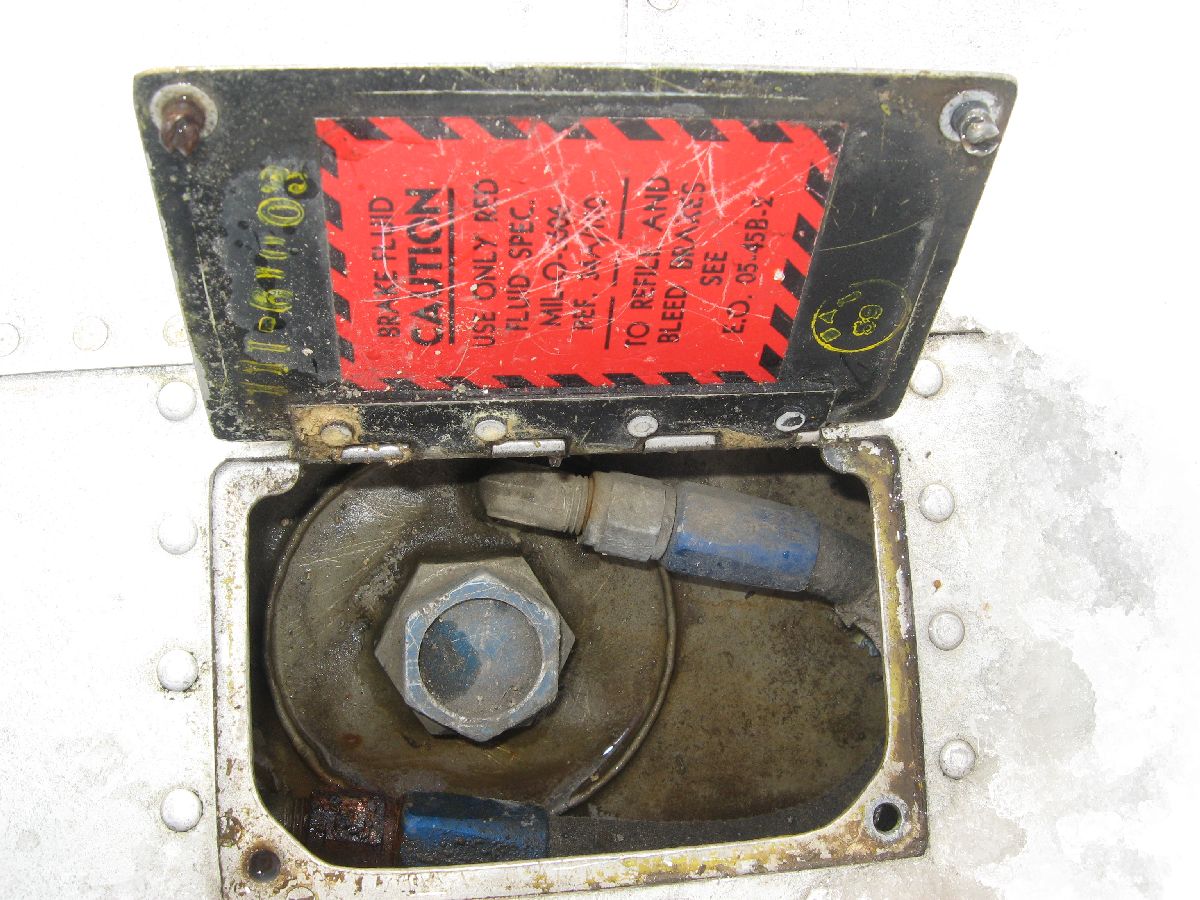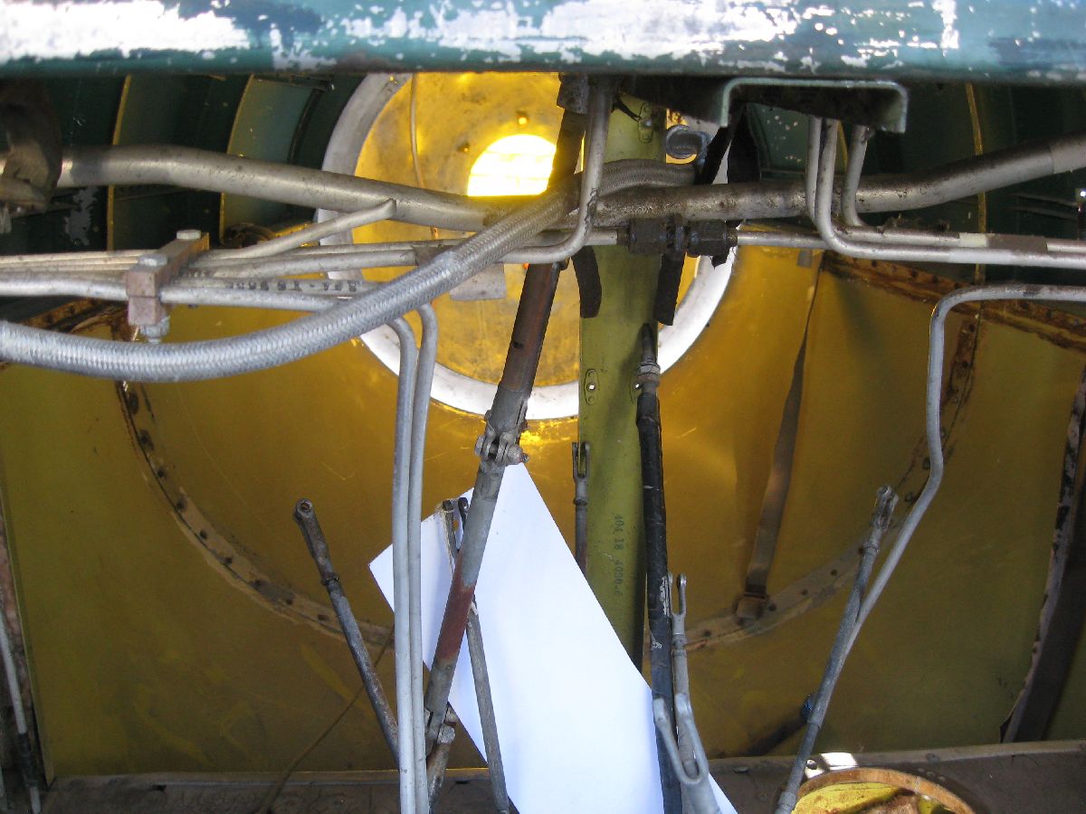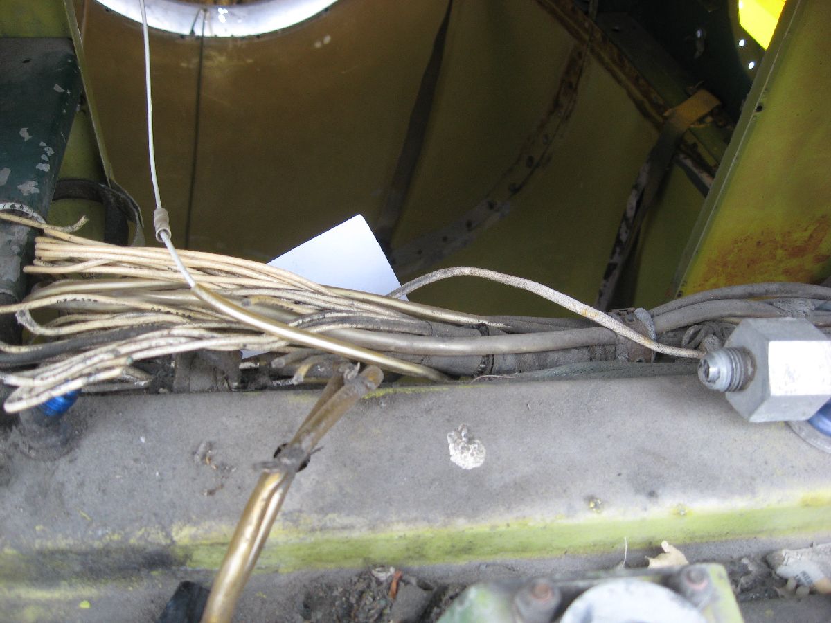 Down past the label, though – that’s what was really interesting. There were two hydraulic lines running down from the top of the reservoir further back into the airframe. (What’s even more interesting is that I didn’t find any mention of them in any of the publications thus far!)