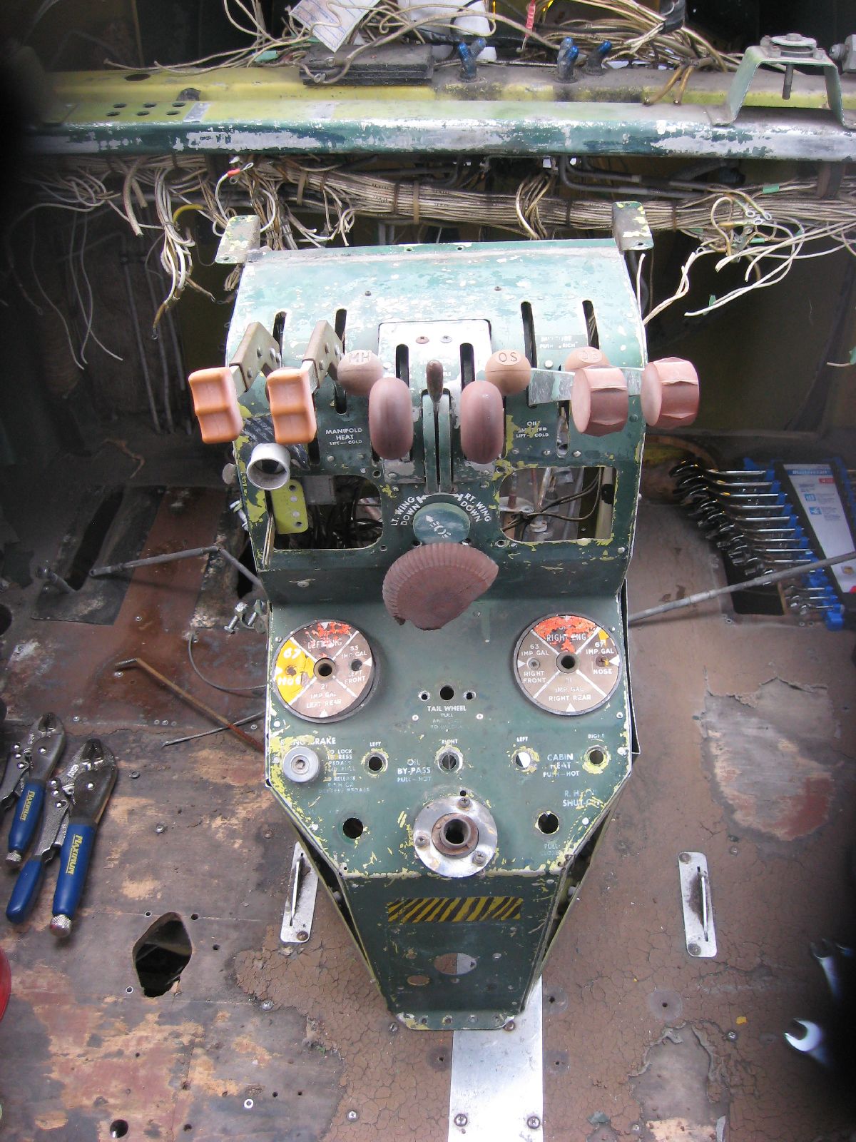 You’d think that I’d have learned my lesson at this point with regards to the removal of the Centre Control Console – just when you think you’ve got all the bolts out, all the cotter pins out, everything possible that could connect it to the airframe – there is always something more.