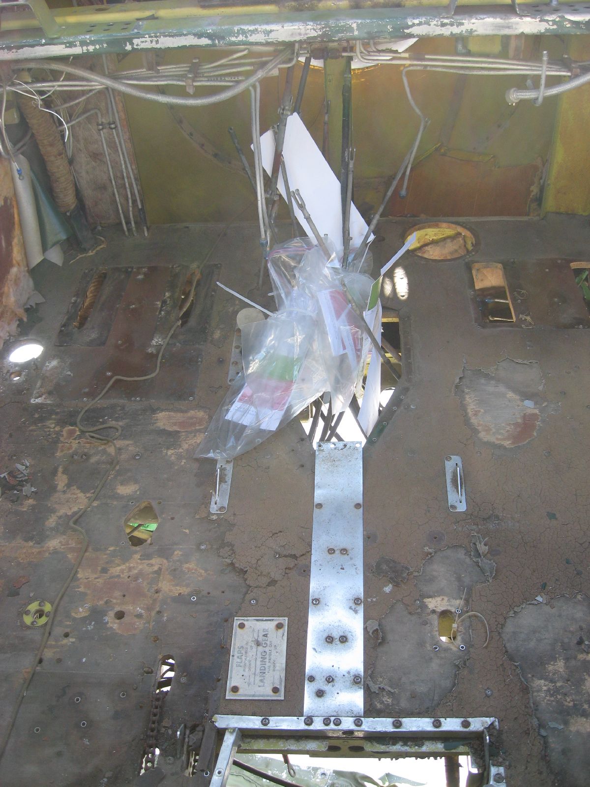 Defined simply as “Plate Assembly – Pilot Rudder Pedals Floor”, or – to be honest – a piece of sheet metal that’s been trimmed and attached to the floor to protect the floorboards from being scuffed too much, it’s simply the next piece of kit that needed to be removed. I wish that I could say that it was easy – but thankfully it wasn’t too much of a struggle. Now, why was it removed if it’s only sheet metal – and corroded sheet metal at that? Simple – I don’t have the blueprint for that. So, what’s going to be done is very specific measurements will be made from the scuff plate and – not only will a blueprint be created – but the replacement part will be created as well.