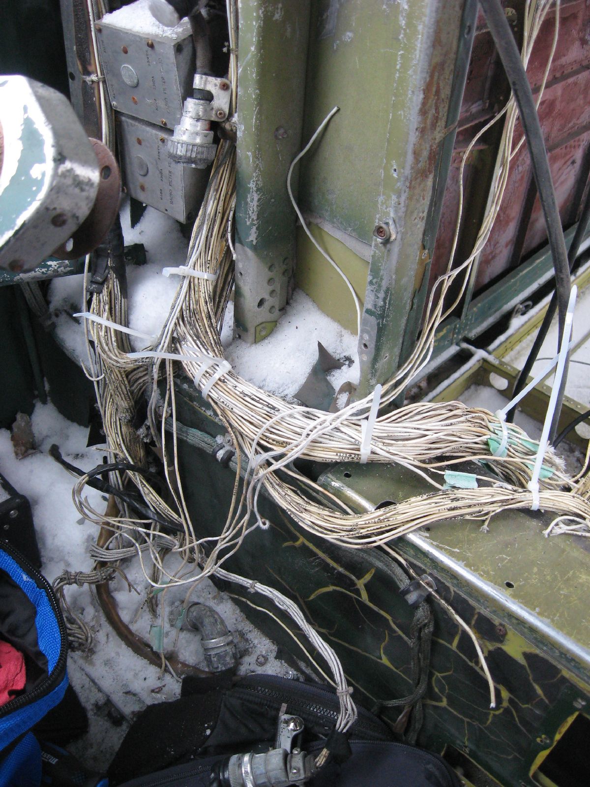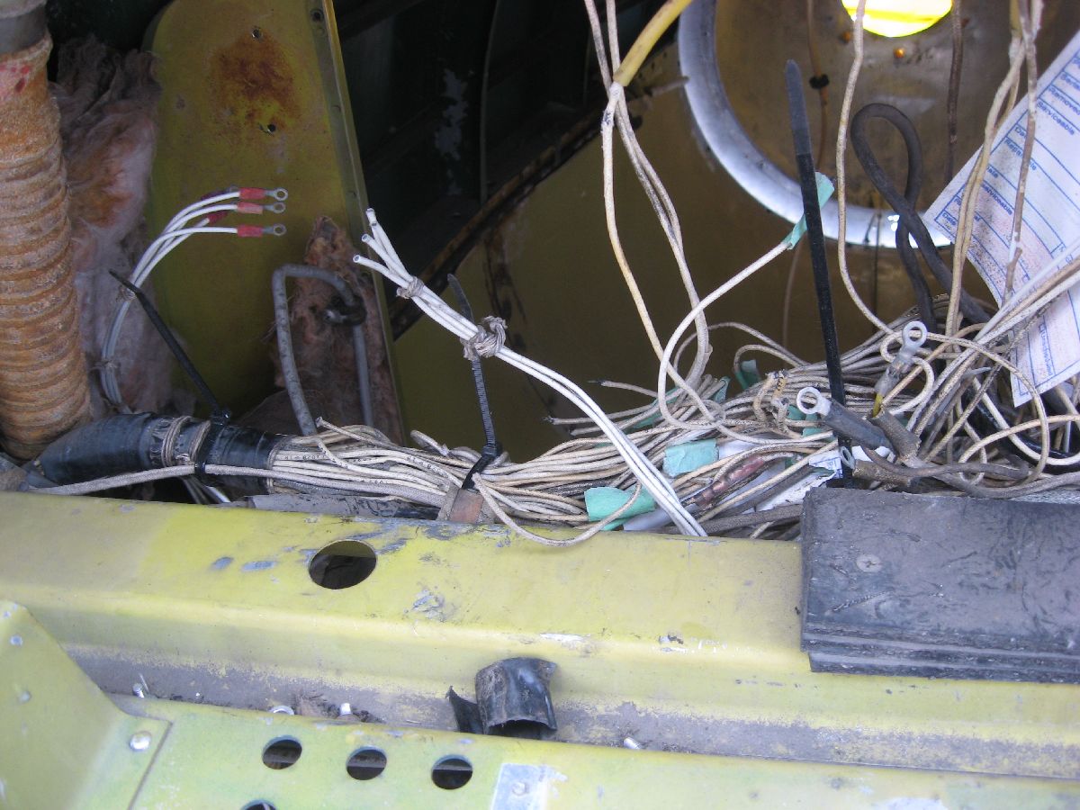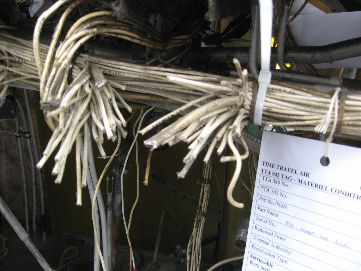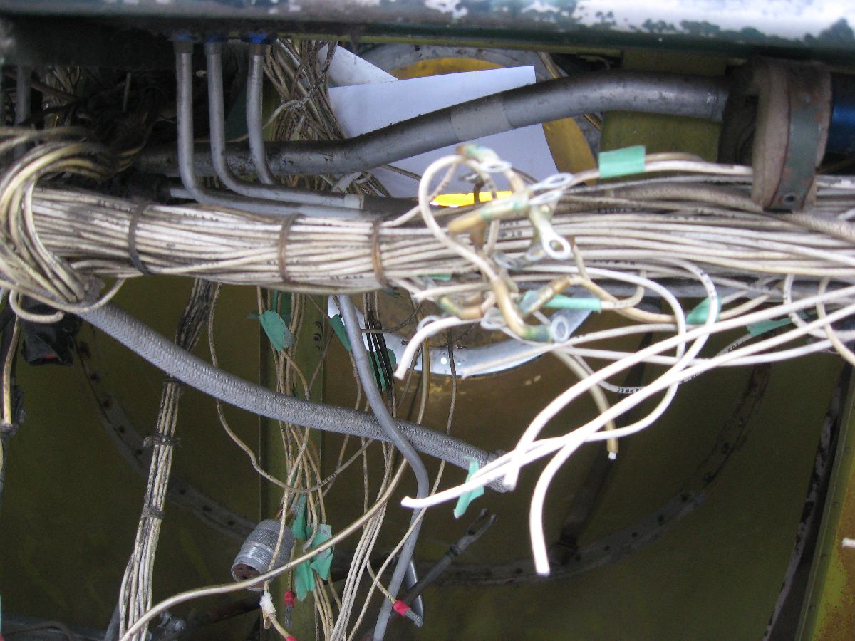 Rather, large bundles of wiring needed to be removed from the cockpit to build up that complete picture. (And, that was something that I wanted to do during MRP 2013 – but, thankfully, I got my chance on this MRP.) So, that’s what I did. I made a point of carefully – very carefully! – labelling each and every wire bundle (plus taking a ton of photos while doing so, as you can see) before I cut the bundles and removed them. Please note, removing bundles like this isn’t something that I was taking in any way lightly – I can appreciate just how much work went into all the electrical wiring that I was cutting. However, something to keep in mind is the fact that the wiring is original to 24 JUL 52, it’s quite heavy (because it’s old), and large portions of the wiring had already been removed due to poor maintenance practises and component removal. I would have preferred to say that I was able to remove all electrical wiring in the whole airplane – after all, that was the tasking! However, the cockpit is almost cleaned out – so I’m going to call this tasking well on it’s way to being completed.