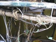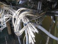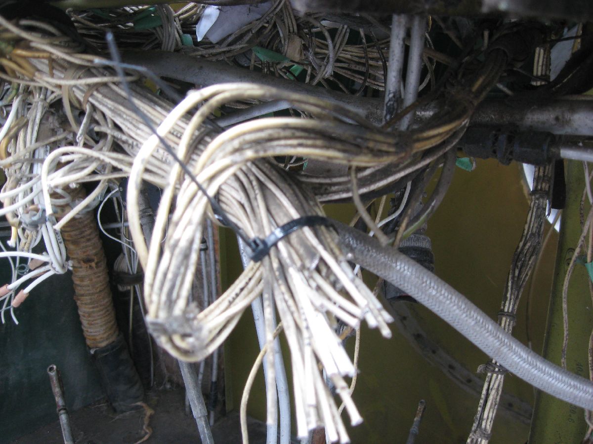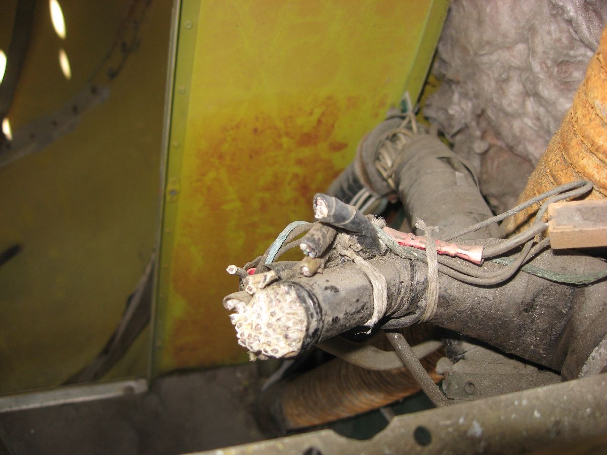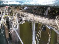 Close up of a cut wire bundle – and after all the wiring has been removed