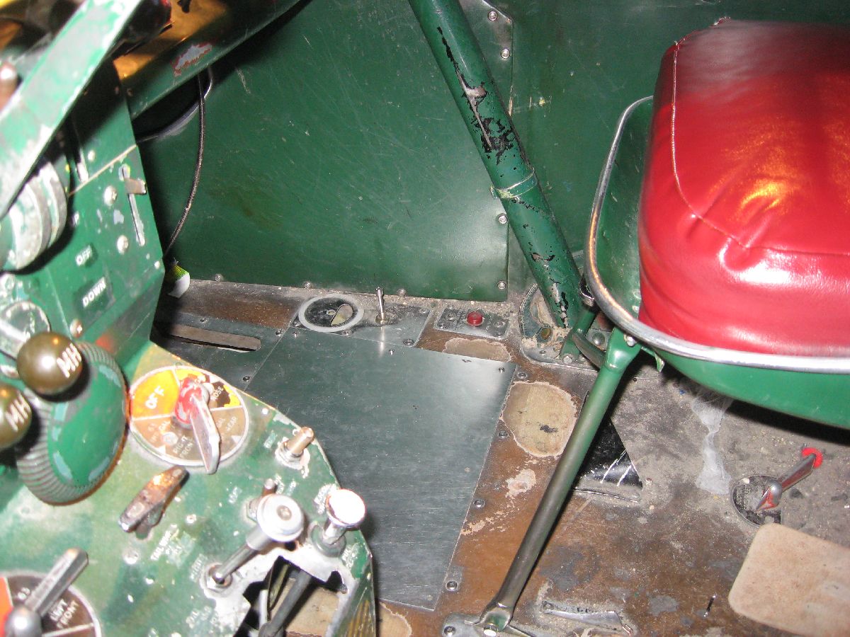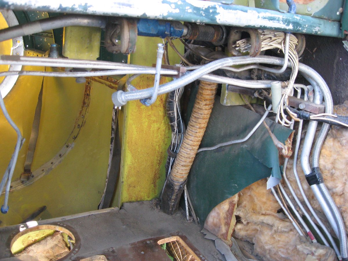 On the other side of the cockpit, the “Plate Assembly – Copilot Rudder Pedal Floor” needed to be removed as well. (Same reasons – no blueprint – and a replacement part will be made.) Granted, these two parts are strictly sheet metal – but I really want to do this restoration correctly.