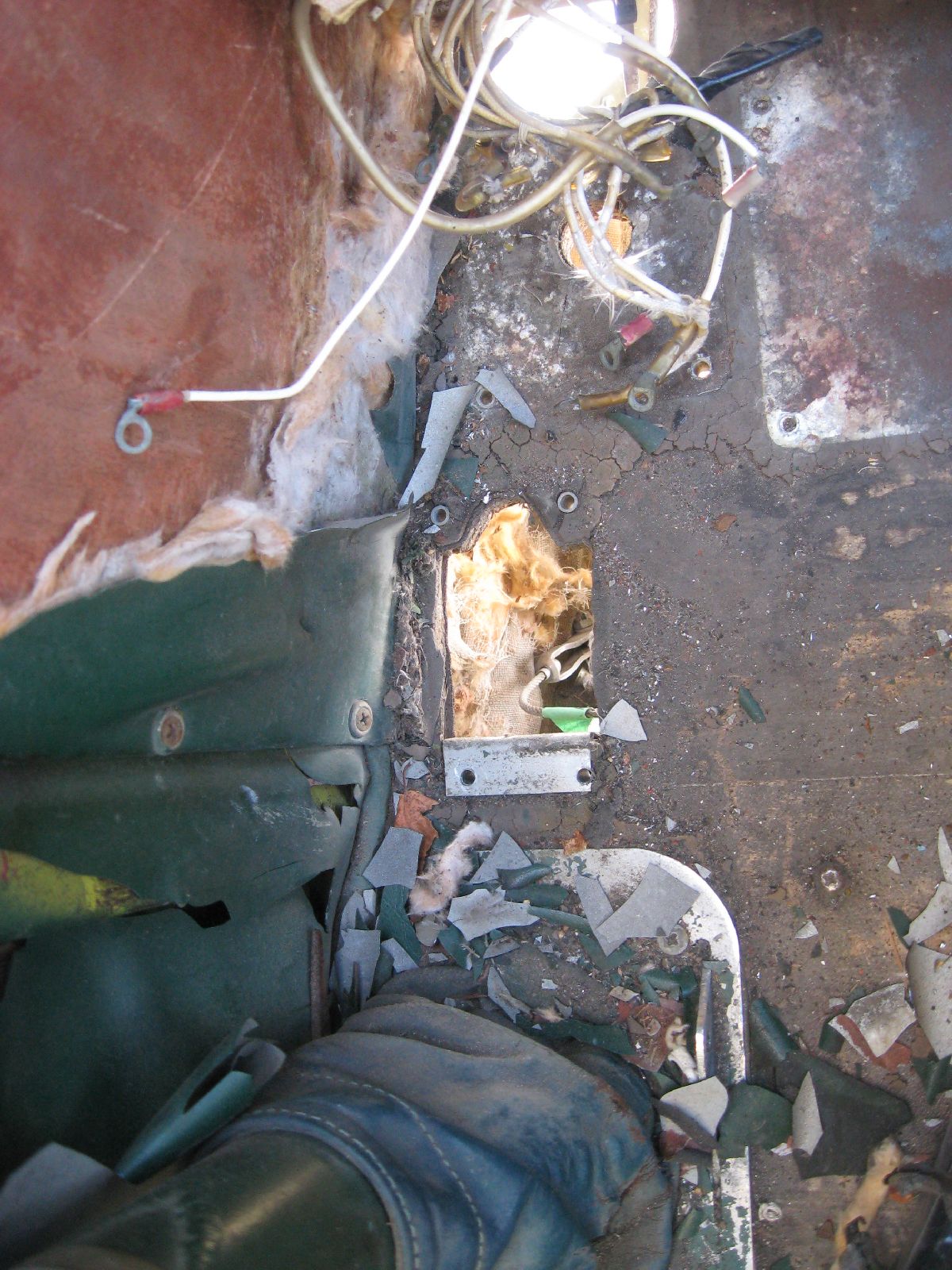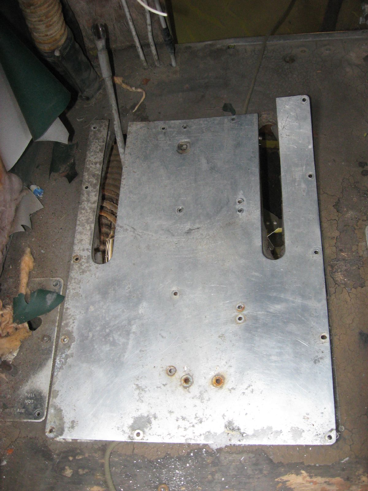Understandably, I was quite relieved that this was rather simple – 4 screws and the CB (and placard on the floor) was removed. (….considering all the grief that the attaching hardware was giving us on the MRP….) The big take away with the removal – the “so what”, if you prefer – is that the electrical equipment is old and it really needs to be replaced. (That’s why it has been removed.)